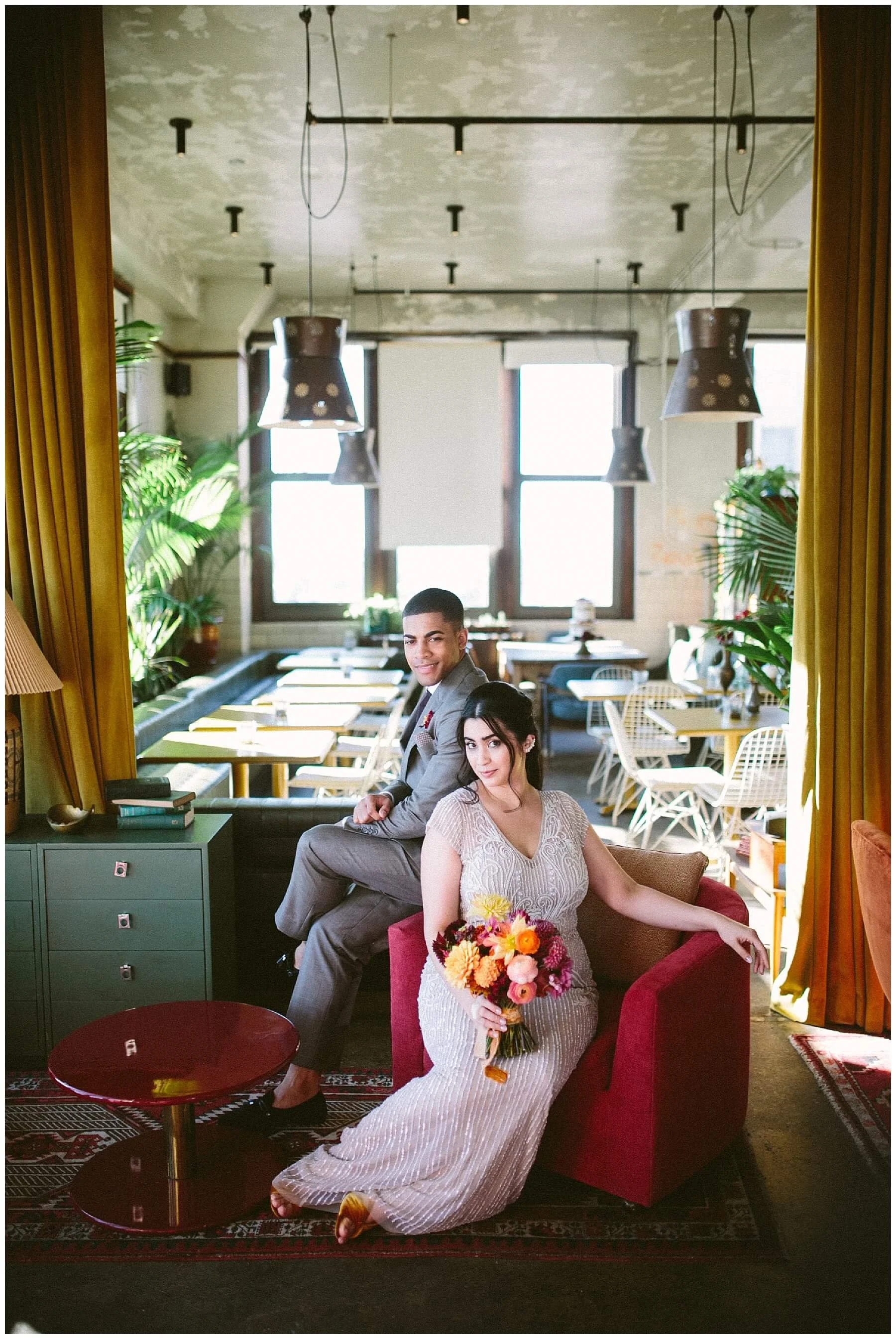 Whimsical elopement in an old technical high school that was renovated into a venue for restaurants and artist spaces